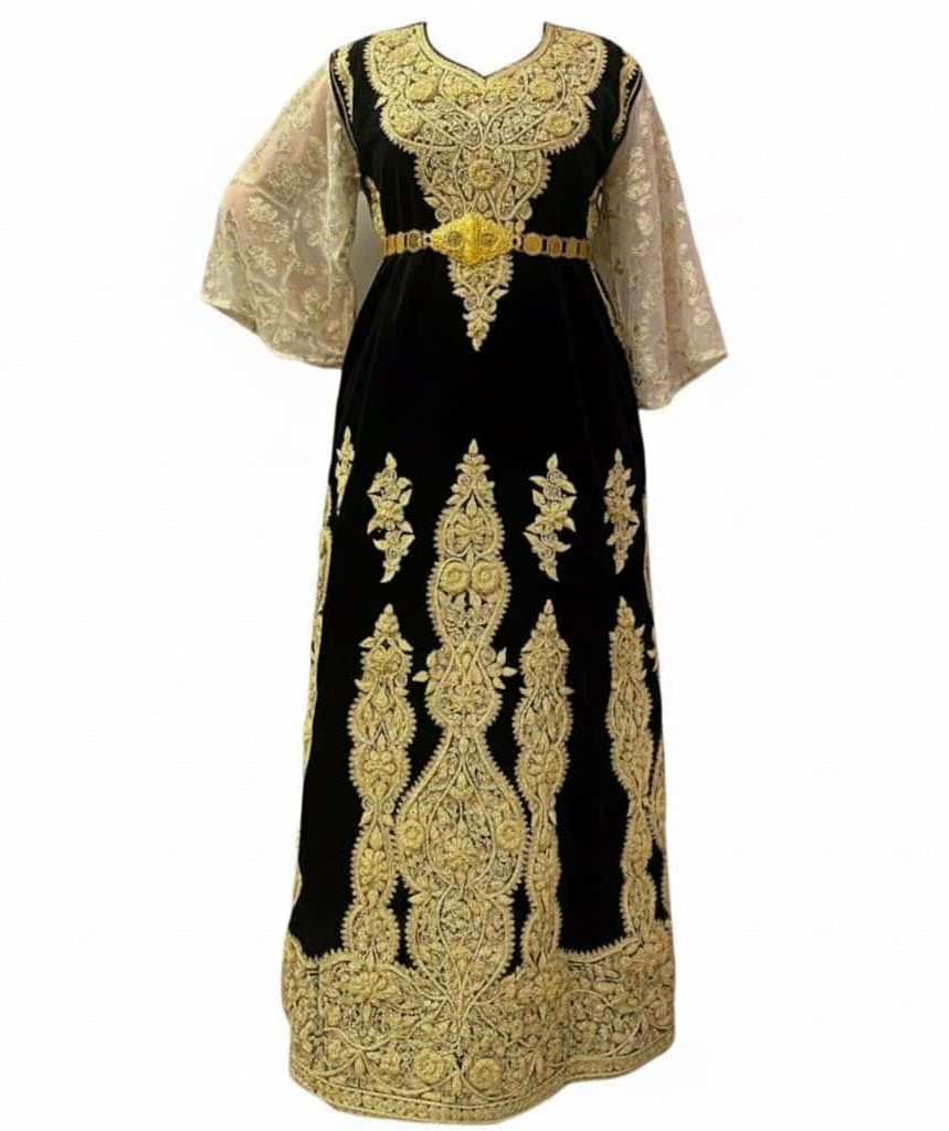 زي تقليدي نسائي أصيل من مدينة قسنطينة، مصنوع من قطعة واحدة طويلة من قماش القطيفة الفاخر، بأكمام طويلة أو قصيرة حسب المناسبة، وفضفاض لتوفير الراحة وسهولة الحركة. مطرز يدويًا بخيوط ذهبية أو فضية وفق تقنيتي “الفتلة” أو “المجبود القسنطيني”، ويتميز بتصاميم تقليدية راقية.