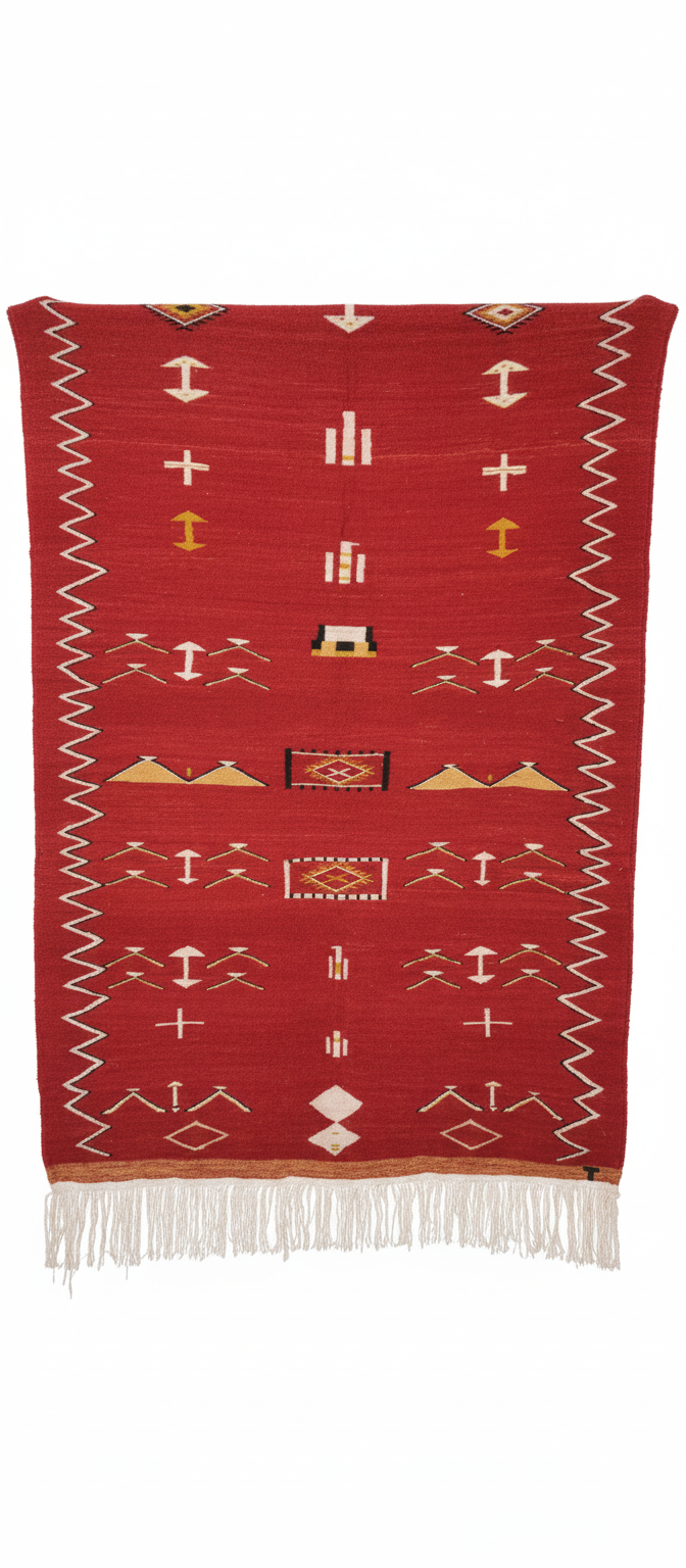 زربية جزائرية تقليدية منسوجة يدويا تعكس أصالة الحرف المحلية وتراث المنطقة.
