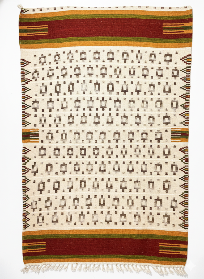 زربية جزائرية تقليدية منسوجة يدويا تعكس أصالة الحرف المحلية وتراث المنطقة.