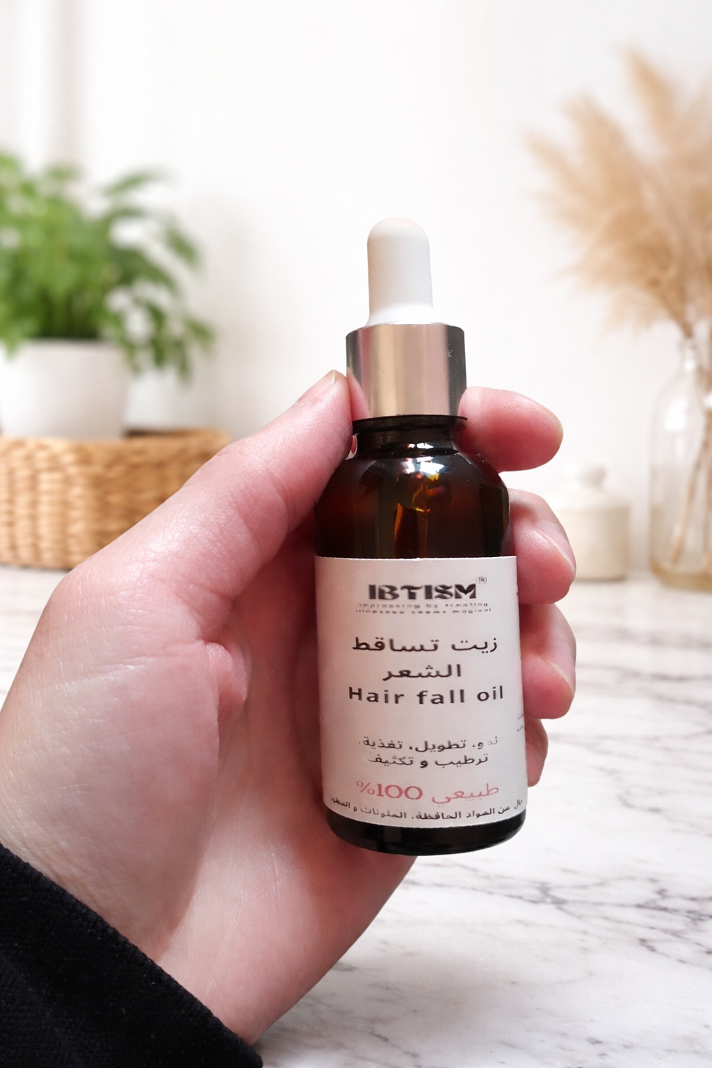 زيت طبيعي للعناية بالشعر، مُحضَّر من مزيج الزيوت الأساسية إكليل الجبل والخزامى، يساعد على تقوية بصيلات الشعر، تقليل التساقط، وتحفيز نمو شعر صحي وكثيف مع تغذية فروة الرأس بشكل طبيعي. 🌿✨