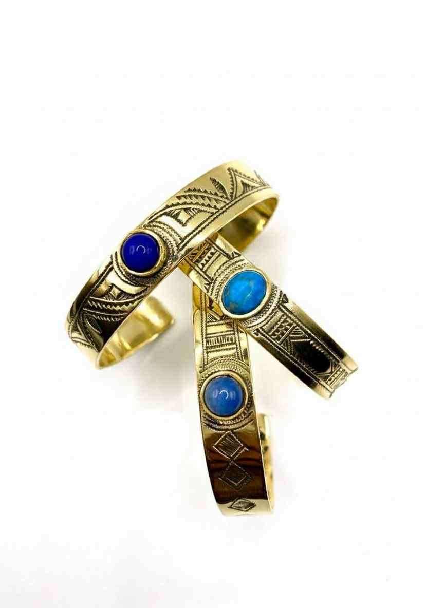 سوار تقليدي جزائري أنيق مصنوع يدوياً من النحاس والفضة، مزين بأحجار كريمة تضيف لمسة فنية من الجمال والأصالة، ليبرز الهوية التراثية الجزائرية من خلال زخارفه الدقيقة وتصاميمه الرفيعة.