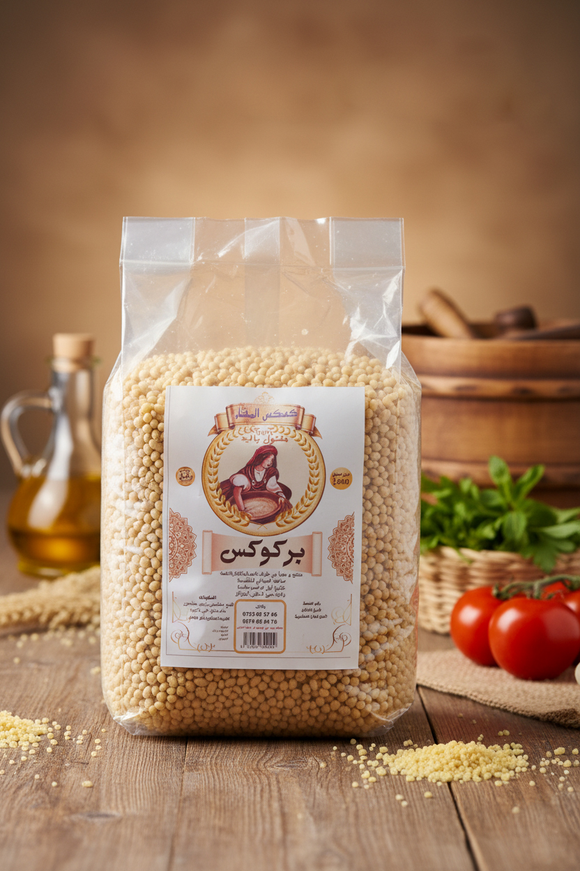 • بركوكس مفتول باليد مكون من دقيق السميد .