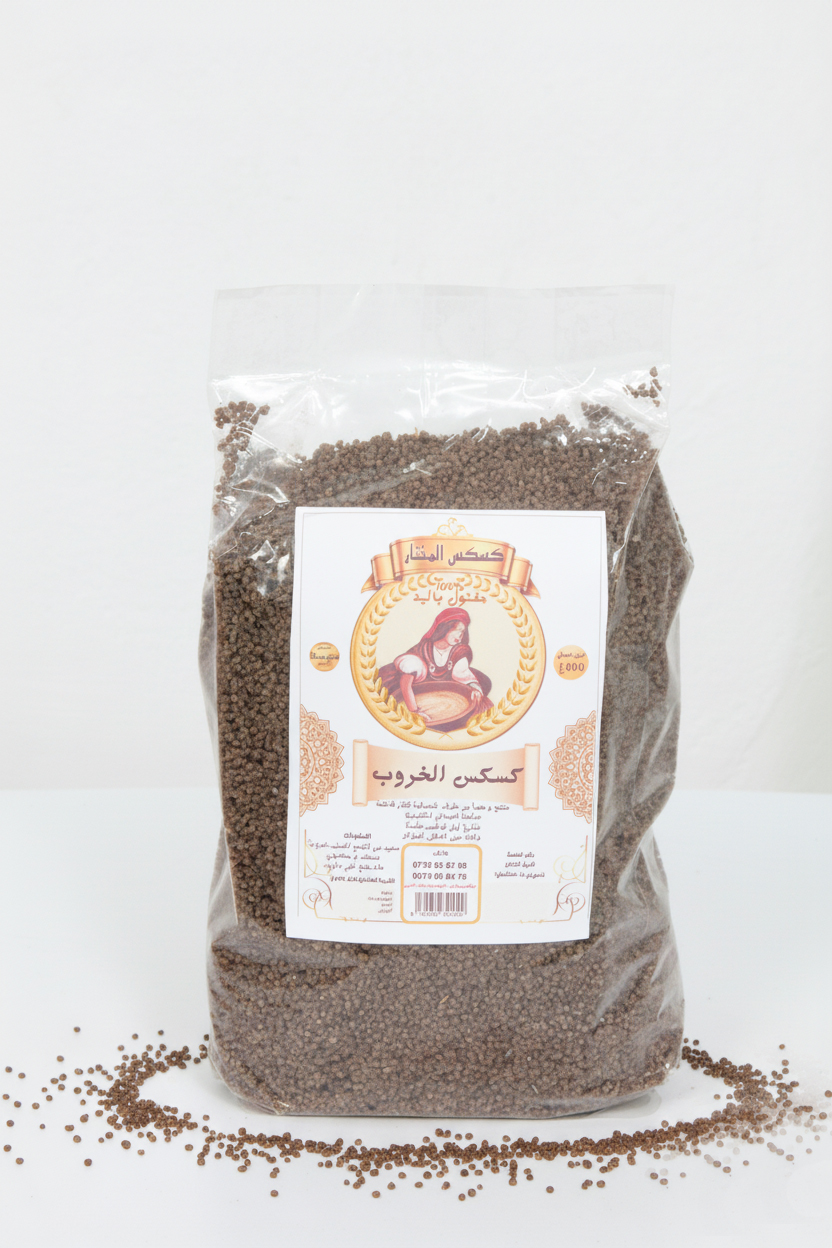 • كسكس الخروب مفتول باليد مكون من سميد القمح وخروب مجفف ومطحون.