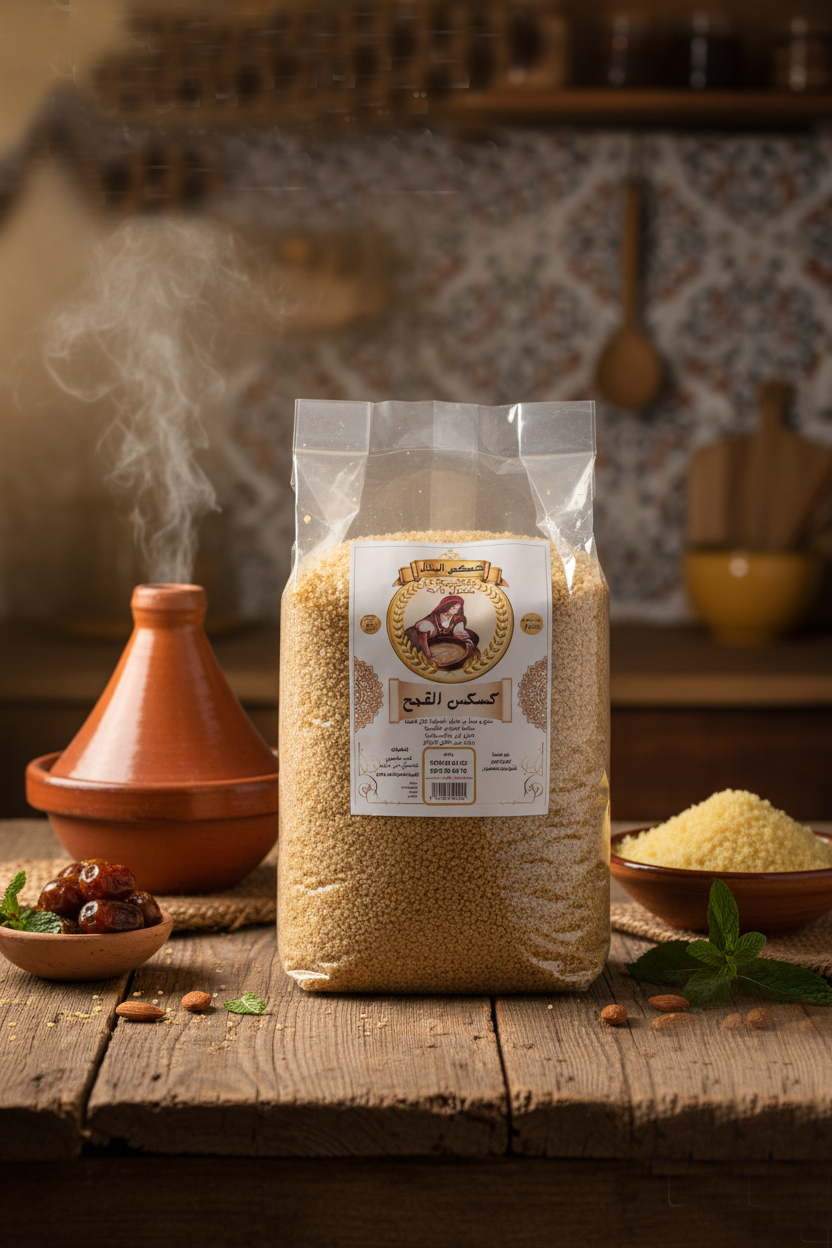 • كسكس القمح مفتول باليد مكون من دقيق القمح الصلب