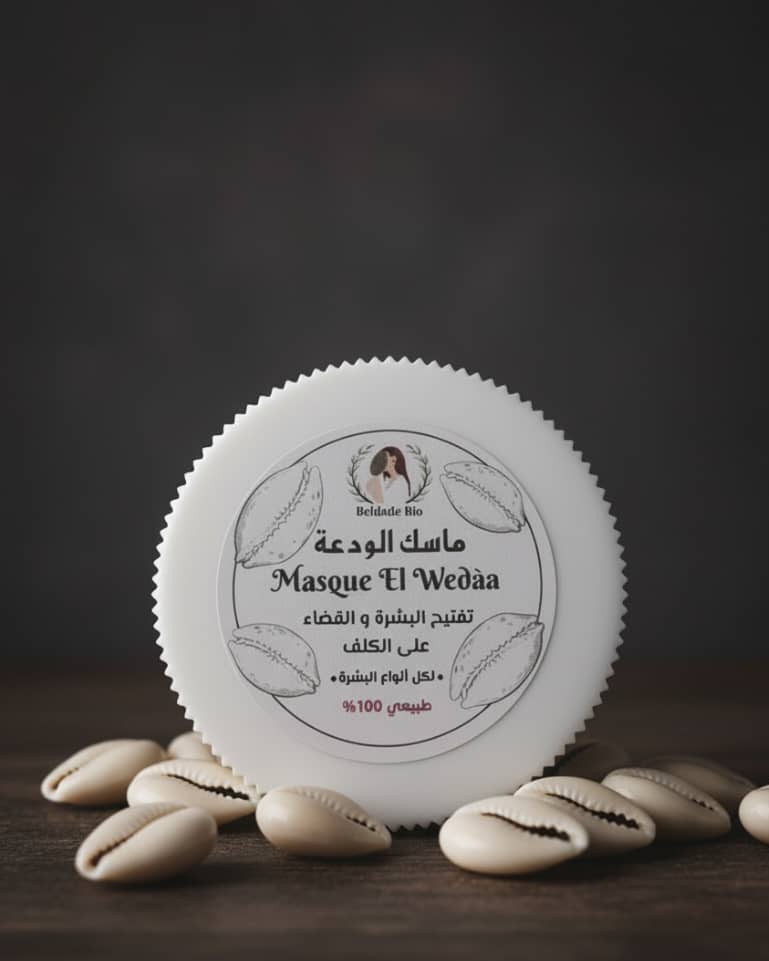 منتوج جزائري طبيعي يتمثل في قناع مميز مصنوع من الودعة النقية، يتم تحضيره بعناية فائقة للحفاظ على خصائصه الطبيعية الفعالة في تفتيح البشرة وتوحيد لونها بشكل ملحوظ.
