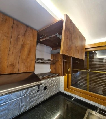 مطبخ أنيق بتصميم عصري يجمع بين الجمال والعملية، مصنوع بأيدي جزائرية وبمزيج من خشب عالي الجودة ومادة الميلامين المتينة.
