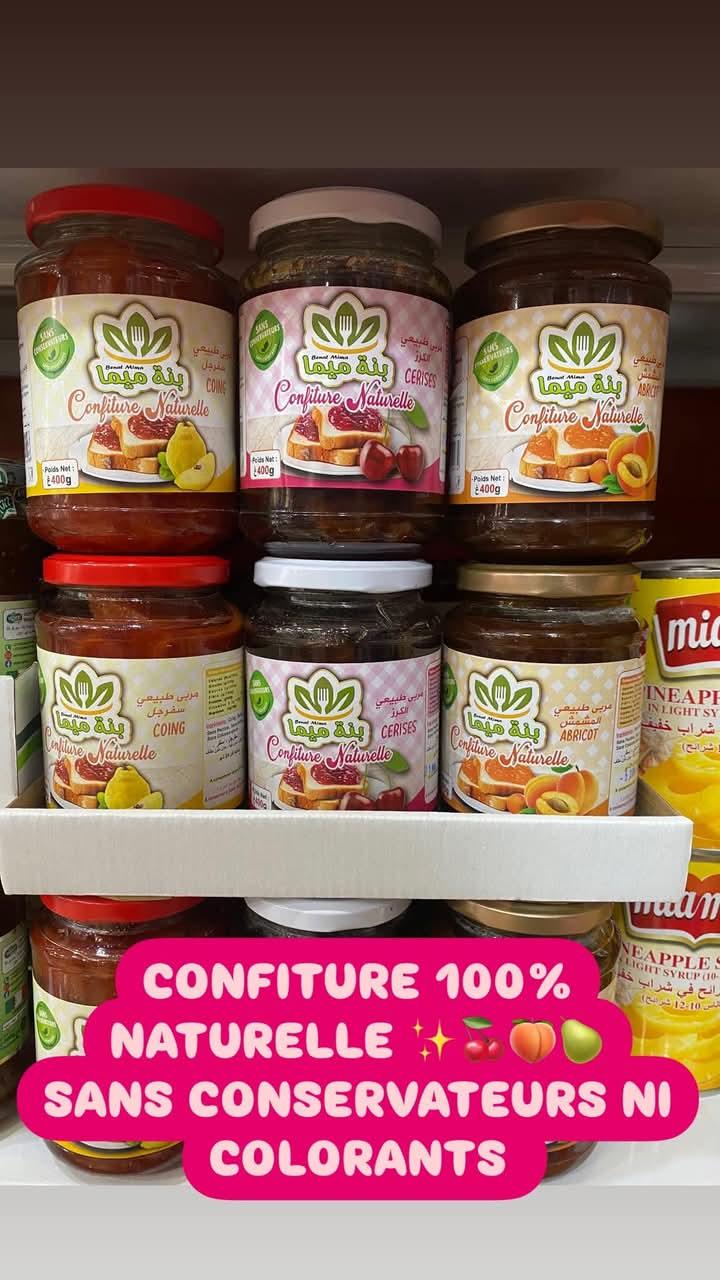 Confiture naturelle algérienne, préparée avec un soin particulier à partir des meilleurs fruits de saison tels que les cerises, les abricots, les oranges et les coings, se distinguant par son goût authentique, sa saveur riche et son arôme naturel préservant les qualités des fruits frais.