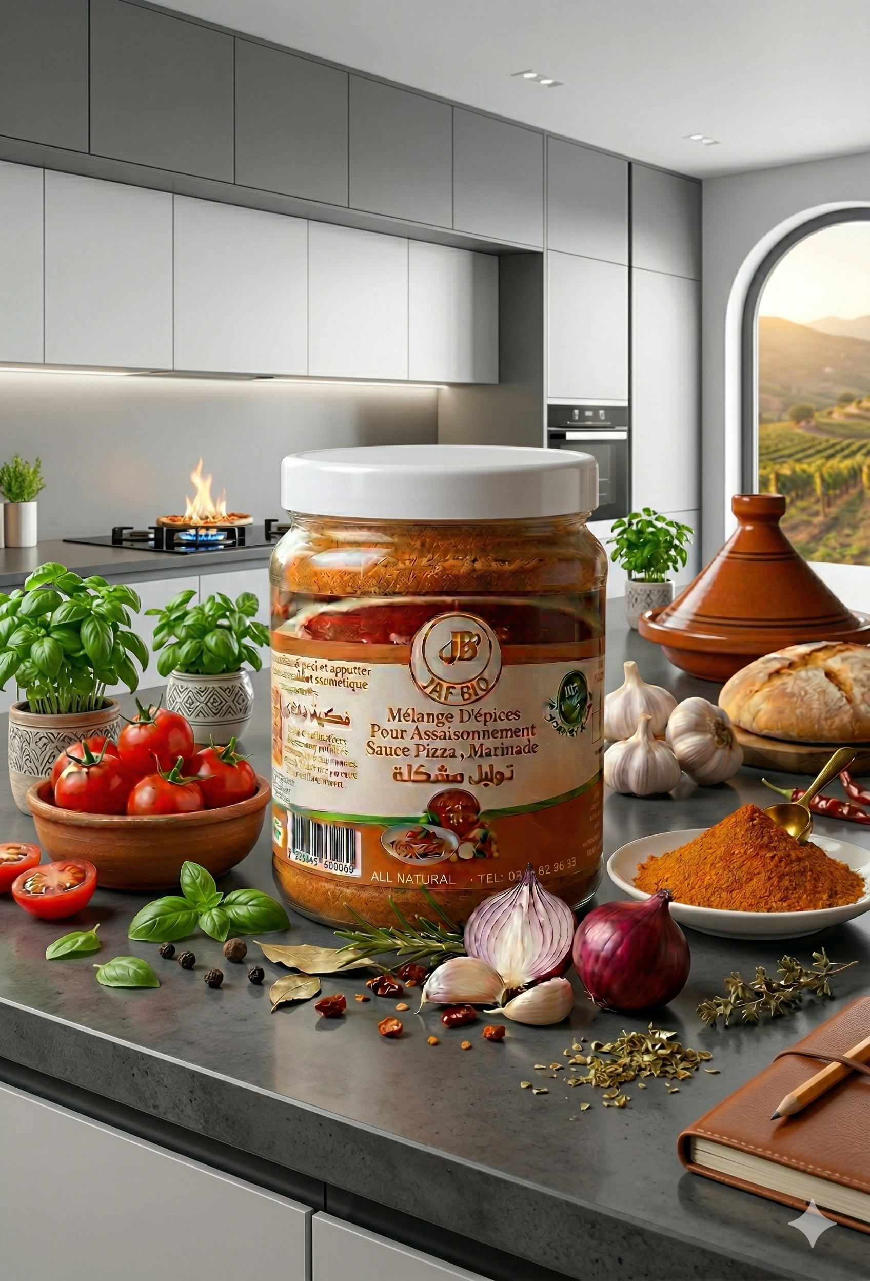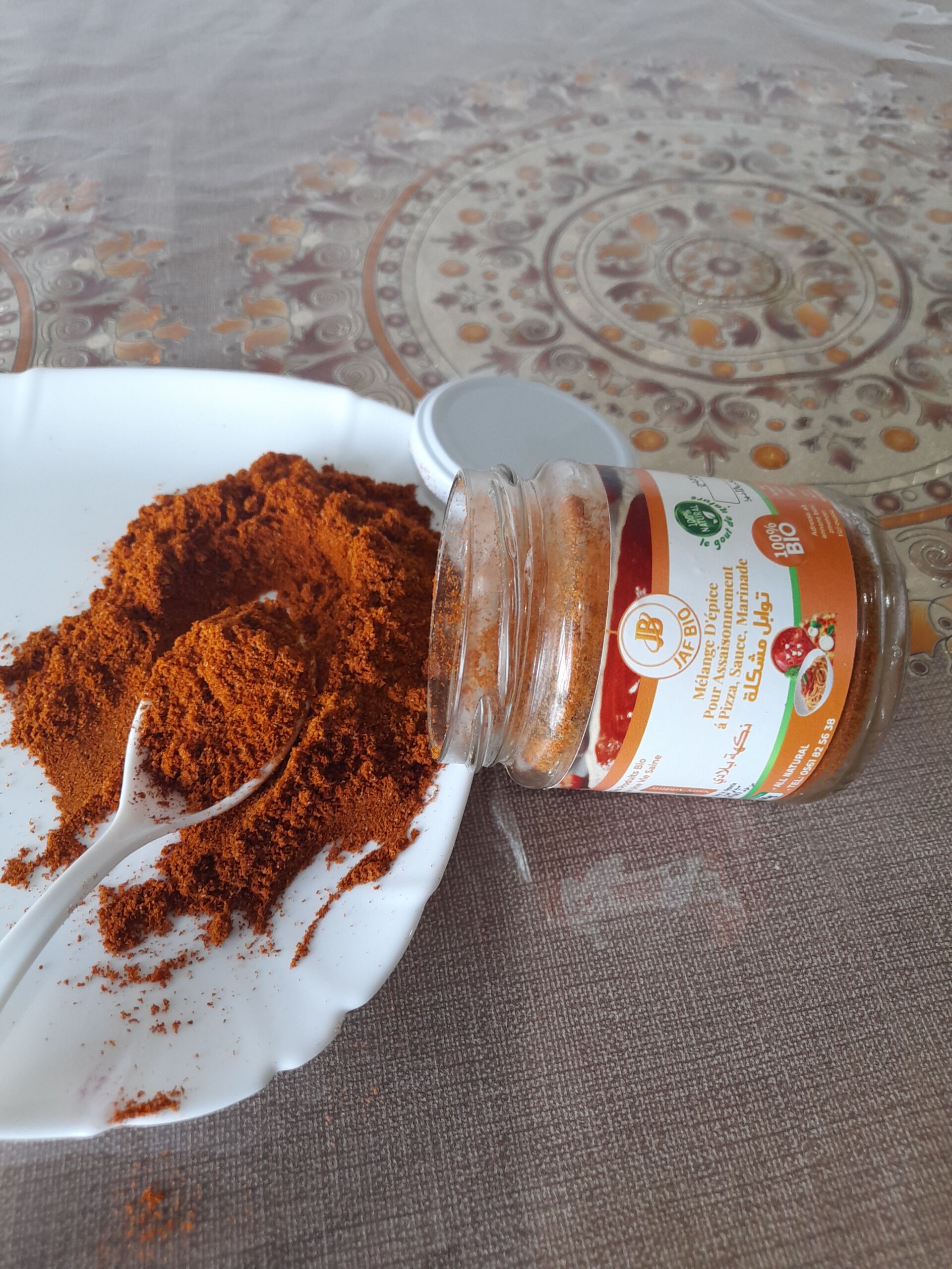 Ingrédients: (L’oignon séché , l’ail, tomate, le poivron rouge doux, basilic et romarin) tout est séché a basse température
