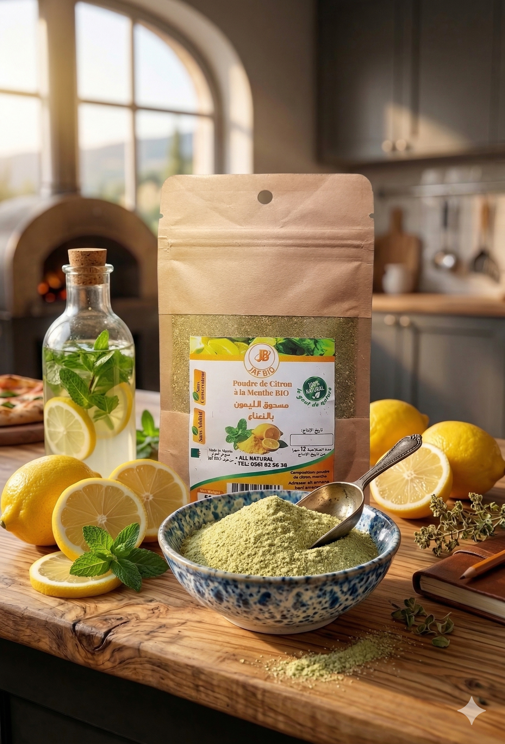 La poudre de citron à la menthe séché est deo, qui conserve toute la saveur acidulée et l’arôme du citron et la menthe pratique et concentrée, elle s’utilise facilement en cuisine pour les tisanes et boissons détox. Riche en antioxydants, elle facilite la digestion, apporte une sensation de fraîcheur et constitue une alternative pratique et saine aux ingrédients frais.