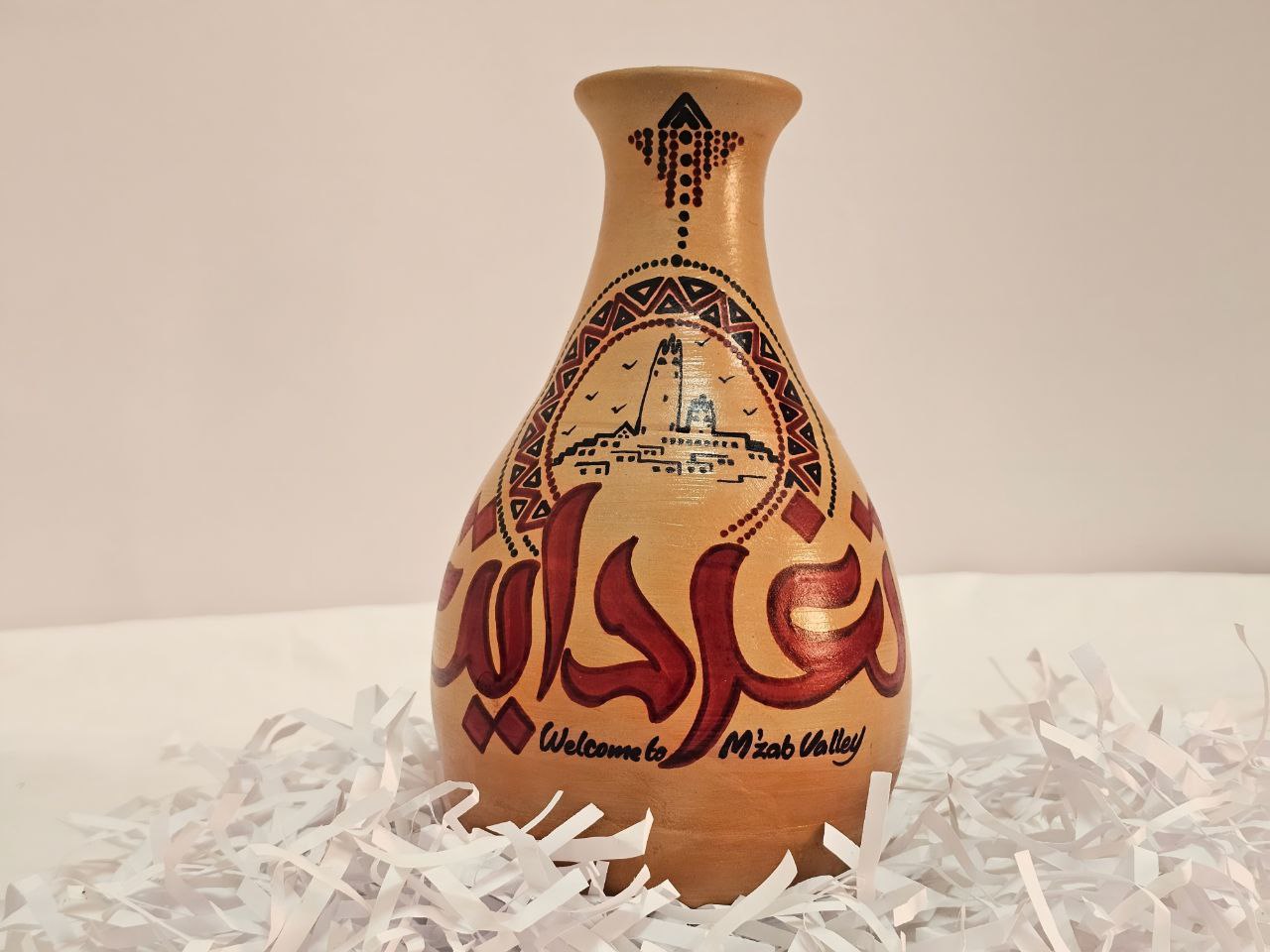 Produit 100 % algérien alliant style traditionnel et identité culturelle, avec des dimensions de 35-40 cm de hauteur, 15 cm de diamètre et 20 cm de largeur, idéal pour un usage quotidien ou comme objet décoratif apportant une touche esthétique authentique.